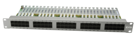 语音配线架有25口和50口两种,都是1U的高度。高密度紧凑型端口设计极大的提高了线缆,跳线的安装和管理空间。标准19英寸机架式安装。高强度的金属面板和自带理线托盘可以有效地承受打线时的外力和线。
