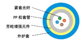 室内光缆主要布放于管道、竖井或楼层内,作为主干使用,同样满足光纤到桌面的应用。多模室内光缆全面优化850mm和1300mm工作窗口的特性,具有最高的带宽和最低的衰减,满足了在850mm和1300mm窗口使用的要求;单模室内光缆全面优化1310m-m和1550mm工作窗口的特性,具有最高的带宽和最低的衰减,满足了1310-mm和1550mm窗口使用的要求。是楼宇部布线(包括垂直、接线柜和工作站)的理想选择。